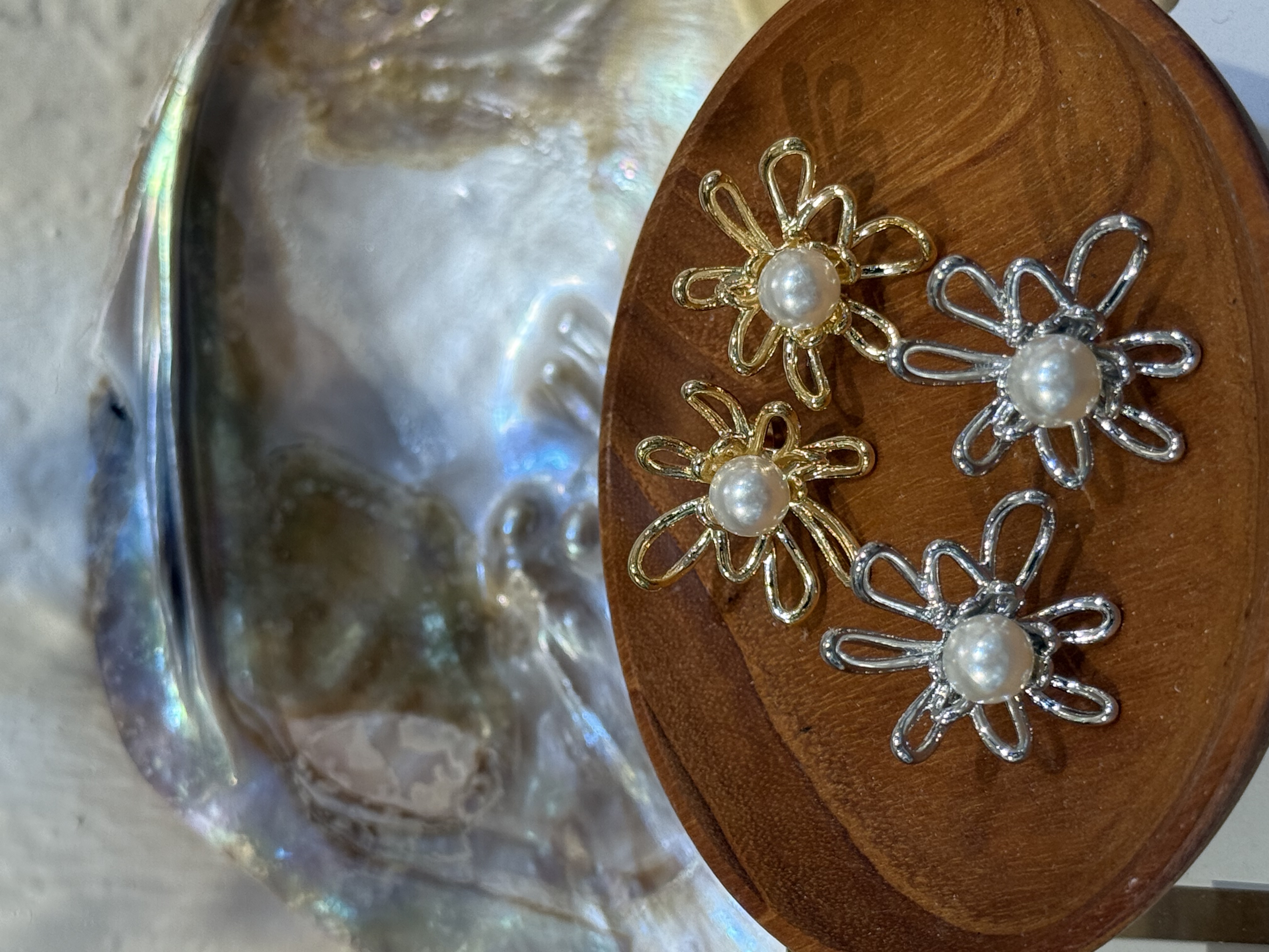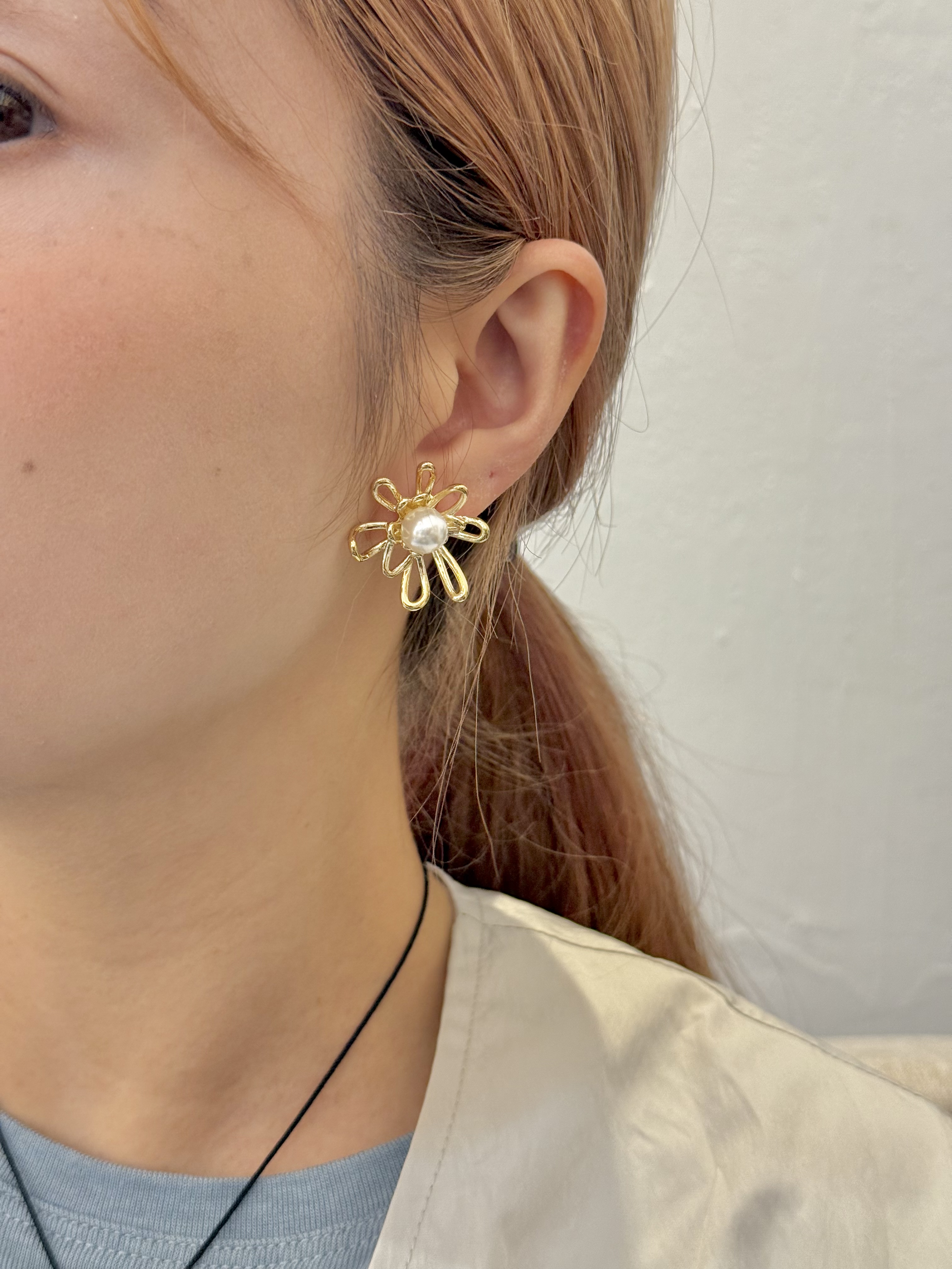 珍珠花形耳環🌺