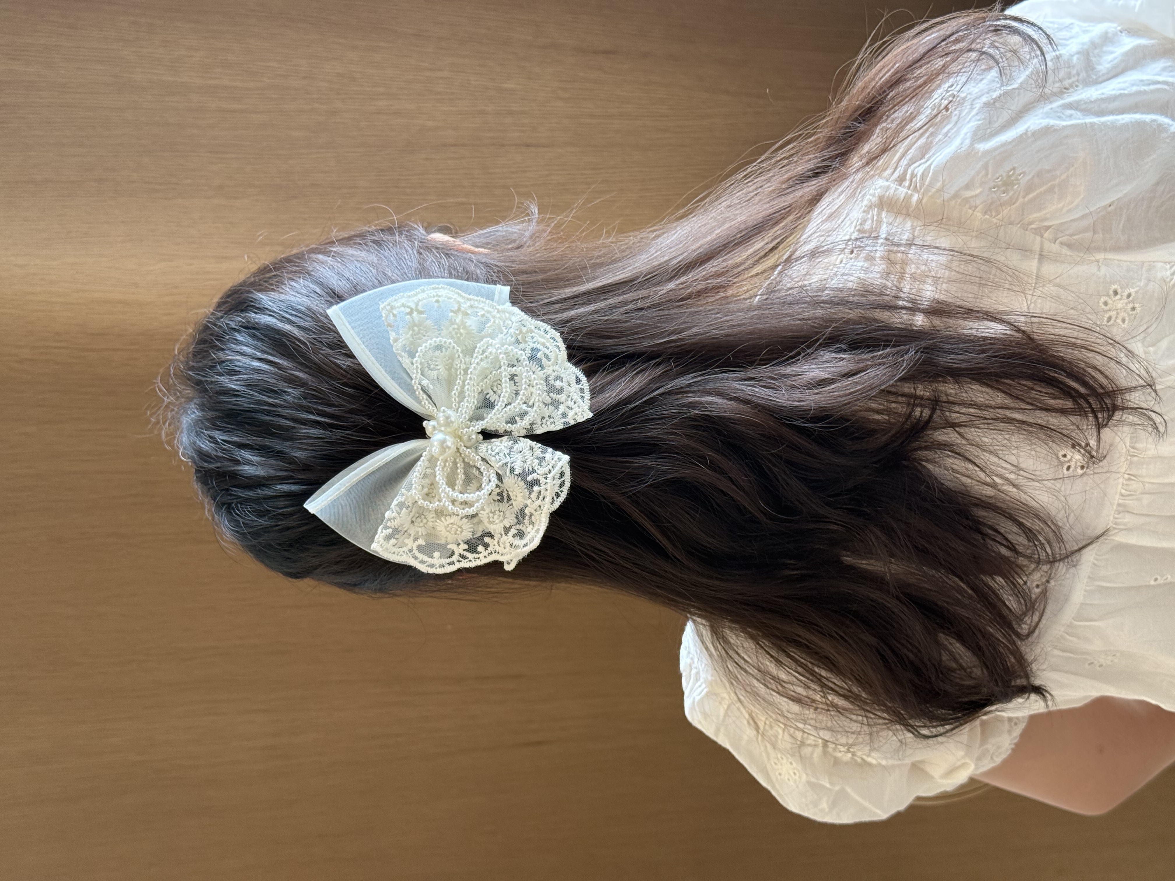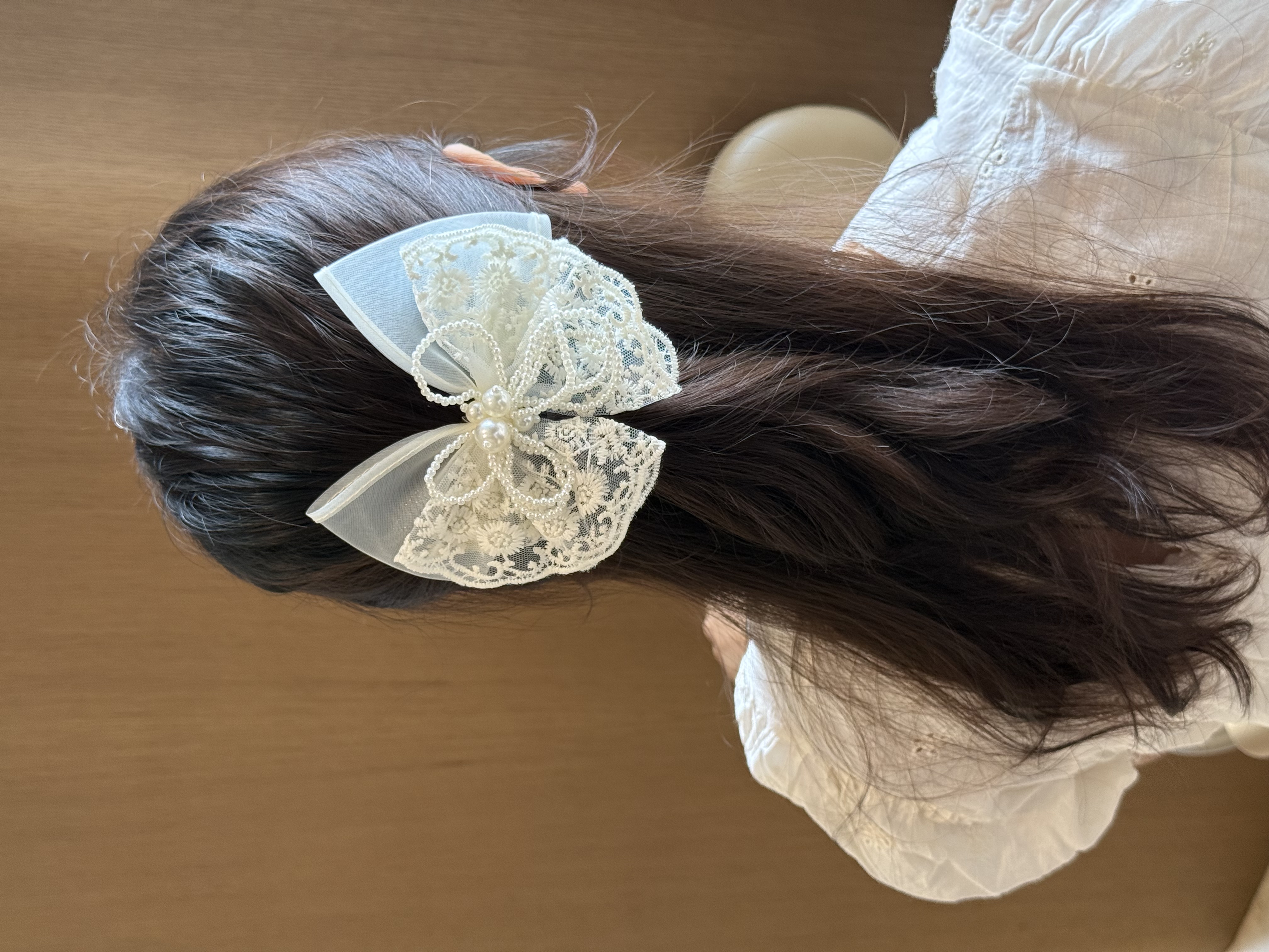 珍珠蕾絲紗質蝴蝶彈弓夾